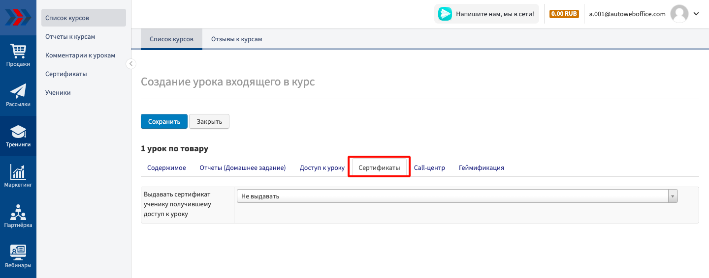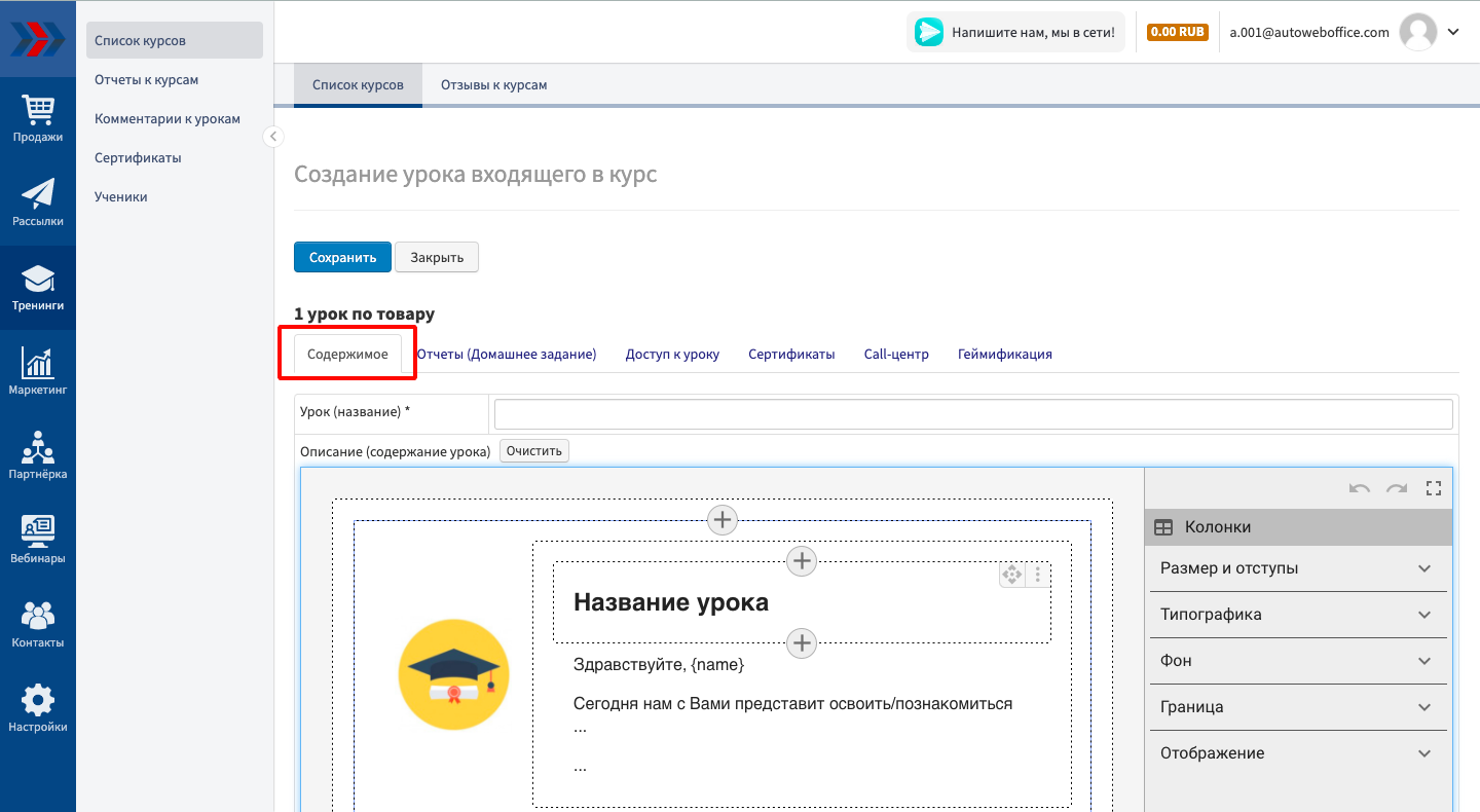 После заполнения всех необходимых полей нажмите на кнопку «Сохранить». Урок создан и отобразиться в списке уроков обучающего курса.