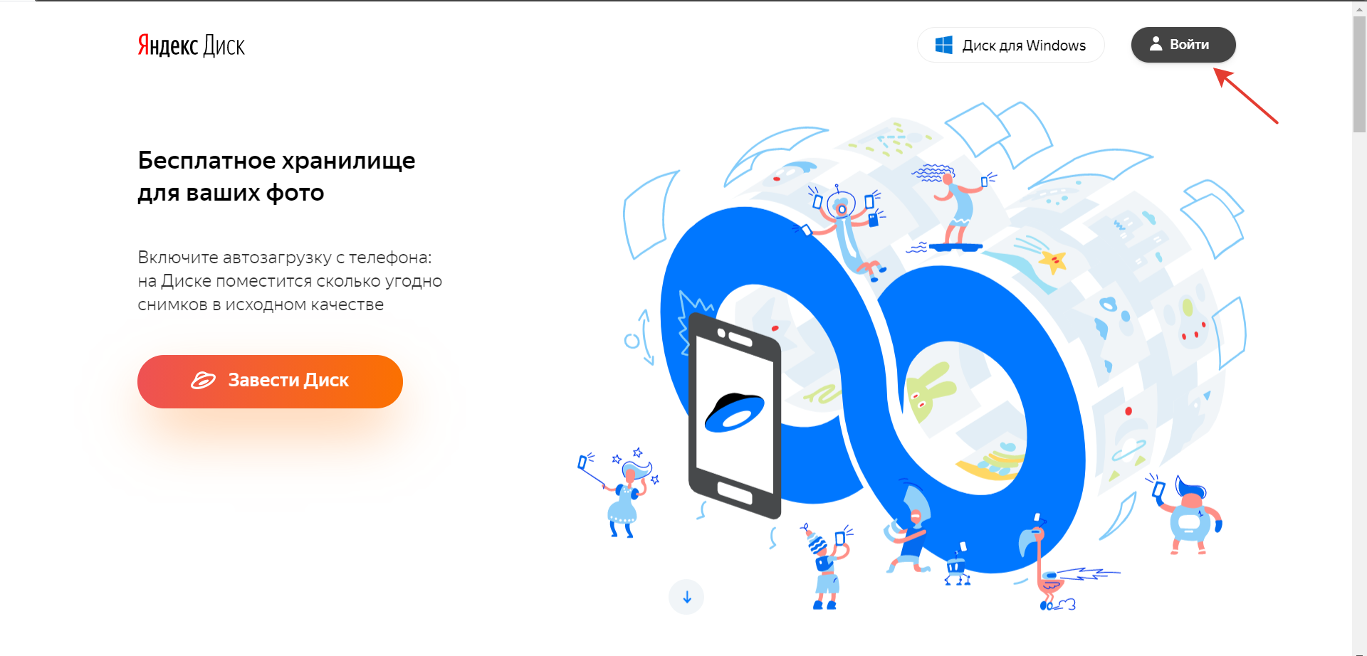 Перейдите по ссылке https://disk.yandex.ru и войдите в аккаунт. Если аккаунта Яндекс у Вас нет, то нажмите “Завести диск” и зарегистрируйтесь: