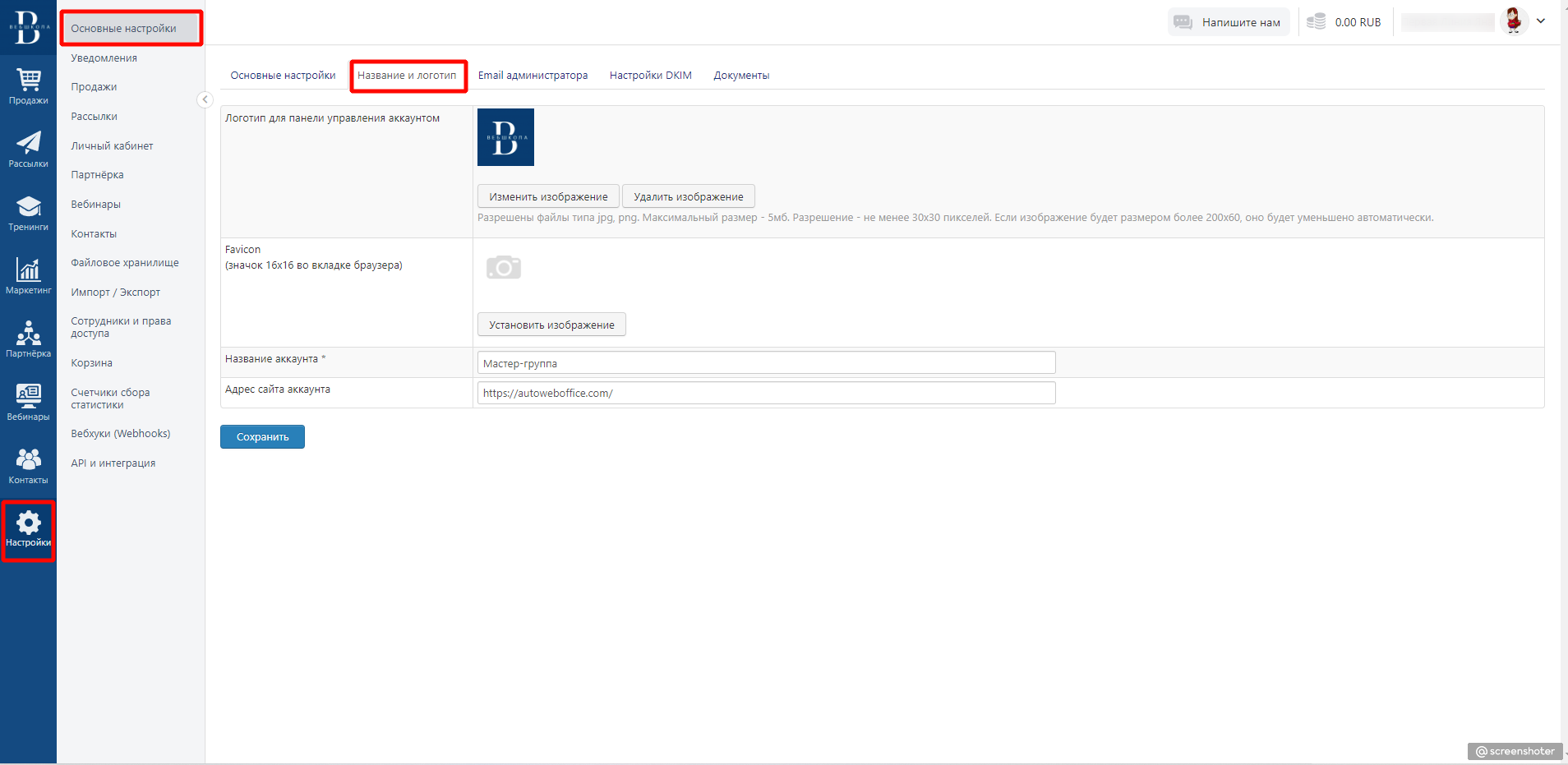 7. Название и логотип. В данном поле Вы можете установить логотип для панели управления аккаунтом, кратко рассказать про Ваш аккаунт, описать, какие продукты или услуги он предоставляет, часы работы, ключевые особенности и т.д.