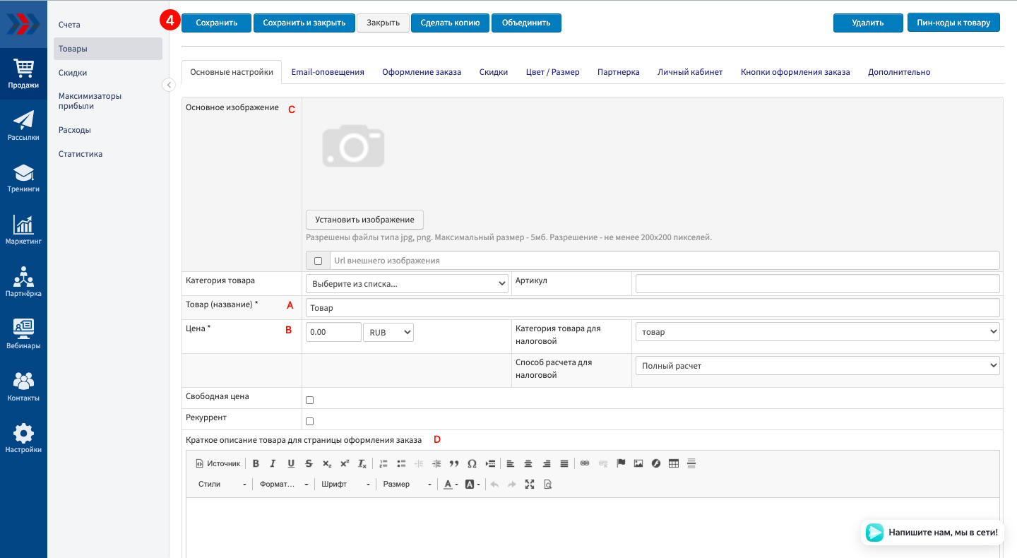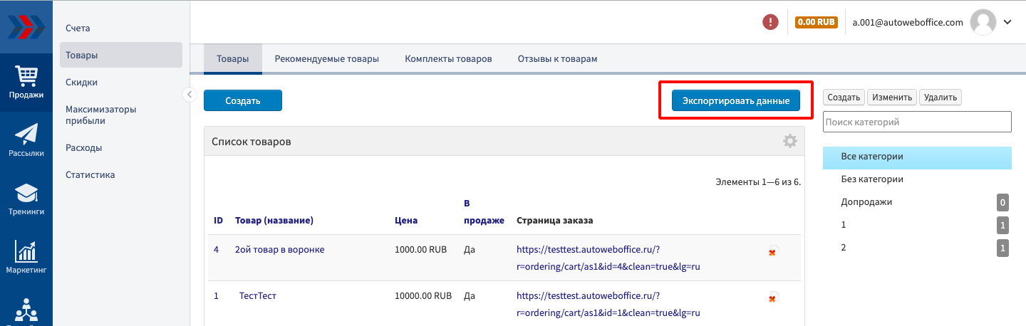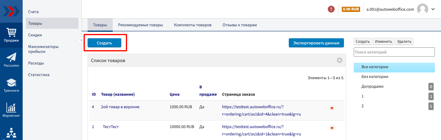 Чтобы начать продавать, Вам необходимо наполнить созданный Вами в CRM АвтоВебОфис аккаунт товарами, покупка которых будет открывать доступ к курсам или автоматически после покупки товара высылать инфо-товары (книги, чек-листы и т. п.)