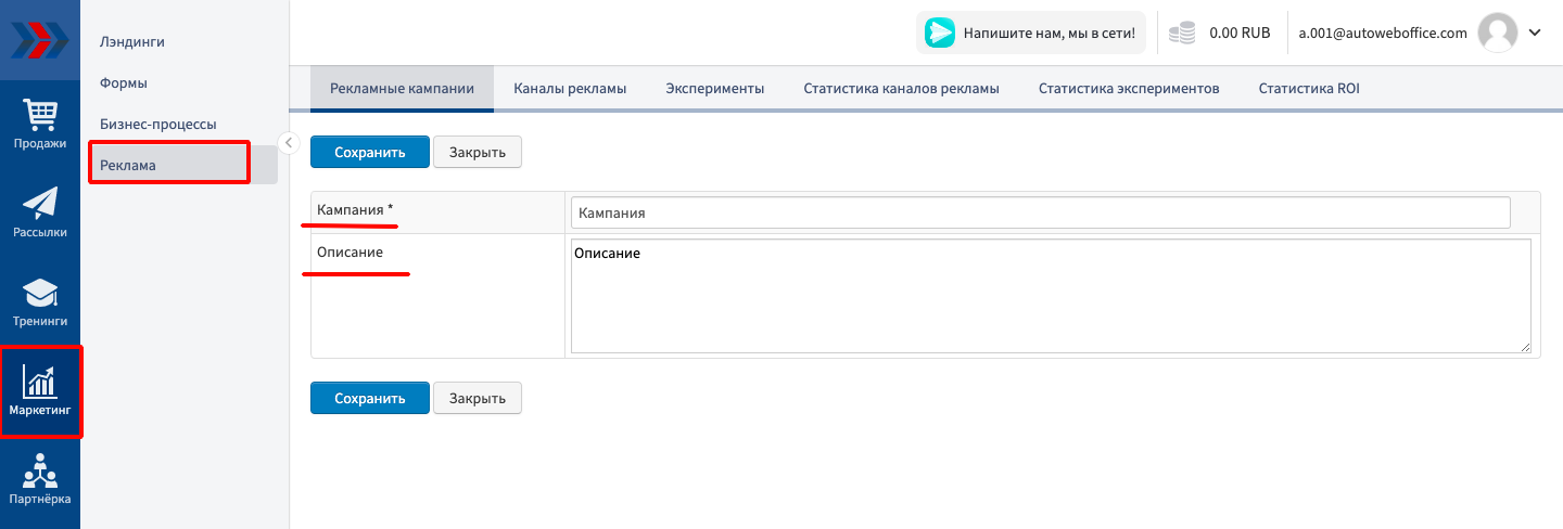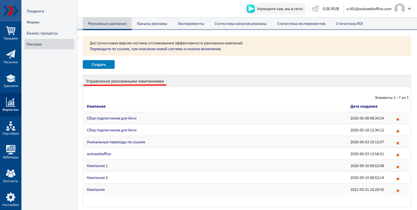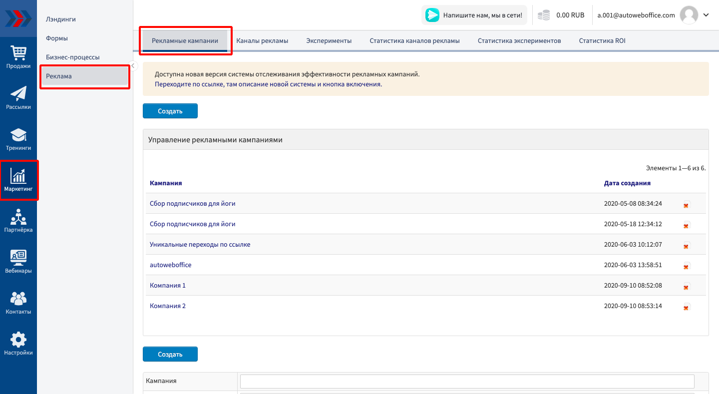 Реклама - один из важнейших элементов любого бизнеса. Значение рекламы для интернет-магазинов еще больше, ведь у посетителей почти нет других способов узнать о нем. Инструмент «Рекламные кампании» сервиса АвтоВебОфис поможет Вам систематизировать информацию о Вашей рекламе, ее эффективности и активности посетителей с разных площадок.