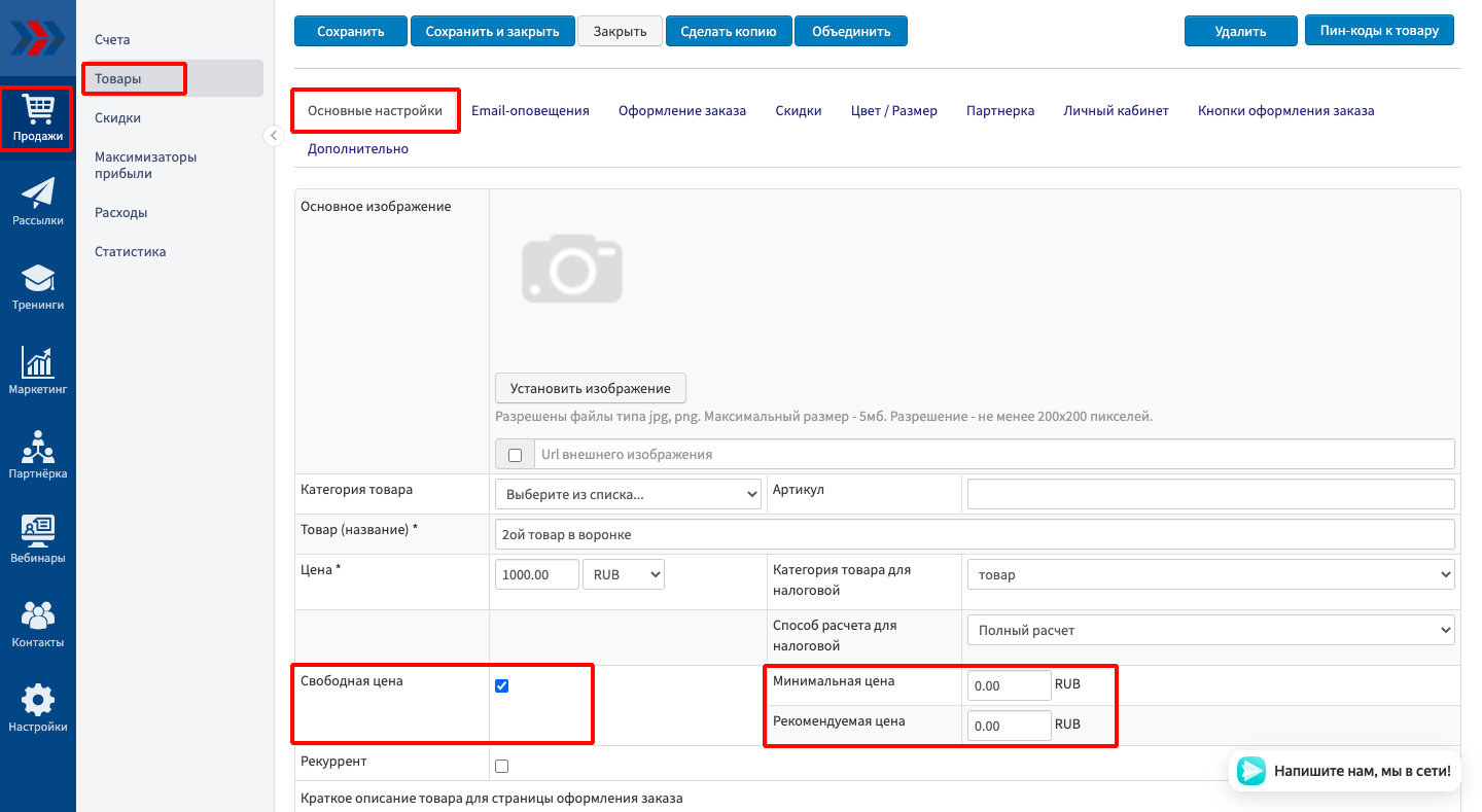 Если Ваш товар может реализовываться по цене, определяемой самим покупателем, Вы можете установить на него «свободную цену» в настройках страницы товара.