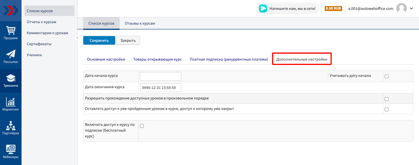 • Включить доступ по подписке (бесплатный курс) - по умолчанию отключено.