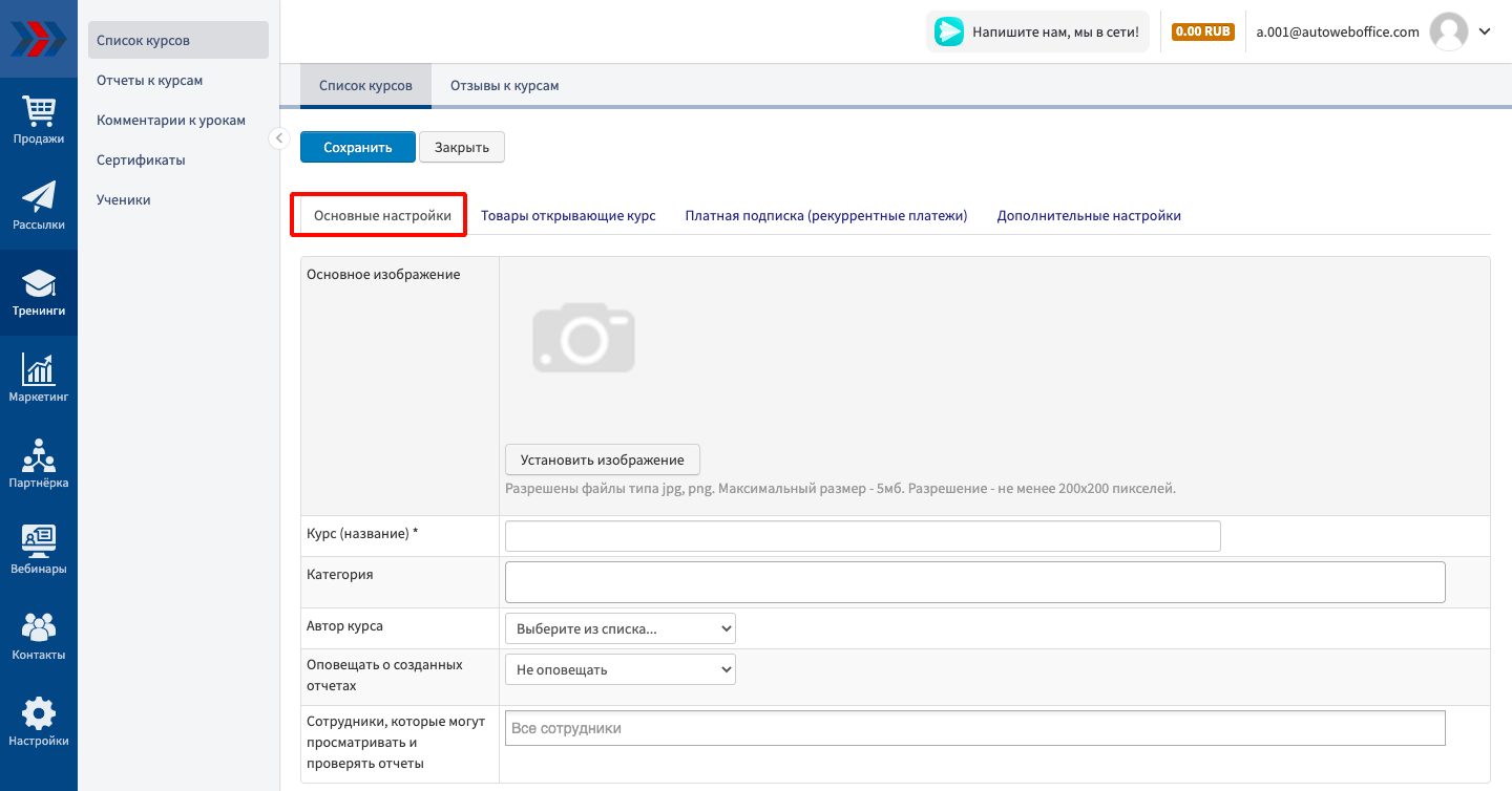 • Основное изображение - загрузите изображение, отражающее суть курса.
