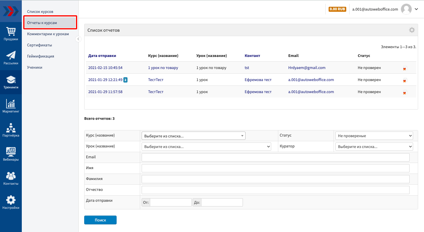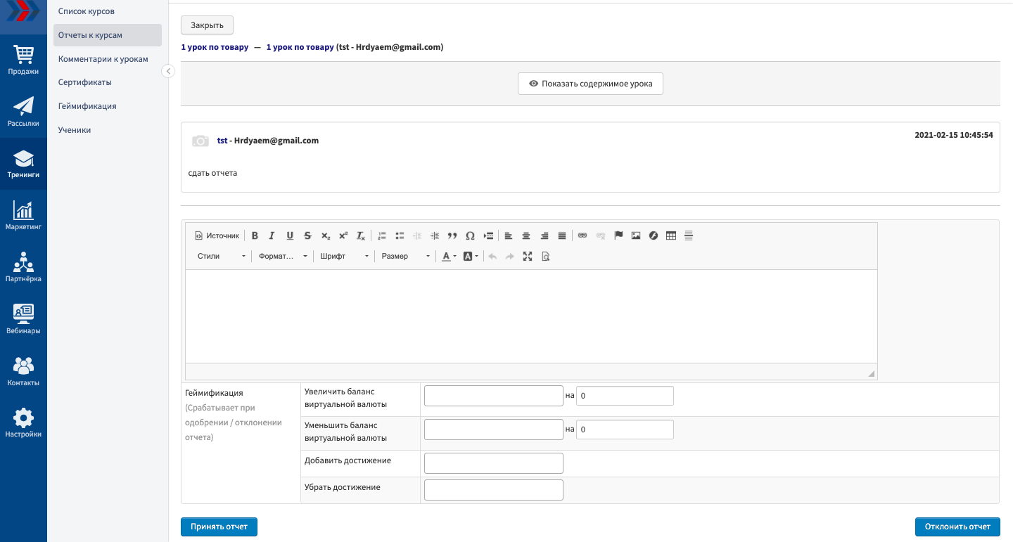 Проверка отчетов по пройденным урокам - важнейший способ взаимодействия ученика и учителя. С помощью этого инструмента Вы можете получать жалобы и пожелания, проверять, насколько ученик усвоил содержание уроков, что поможет Вам корректировать и улучшать учебный процесс.