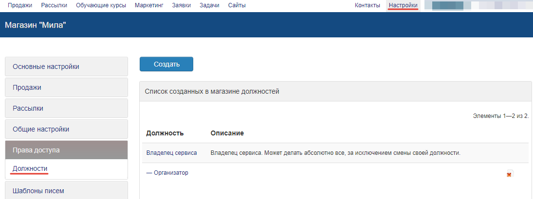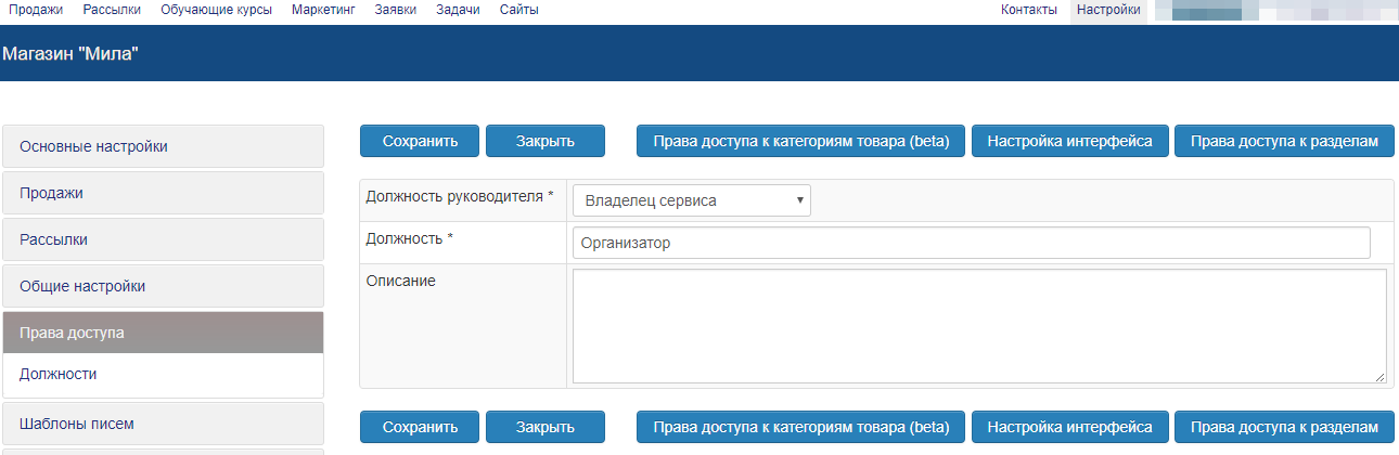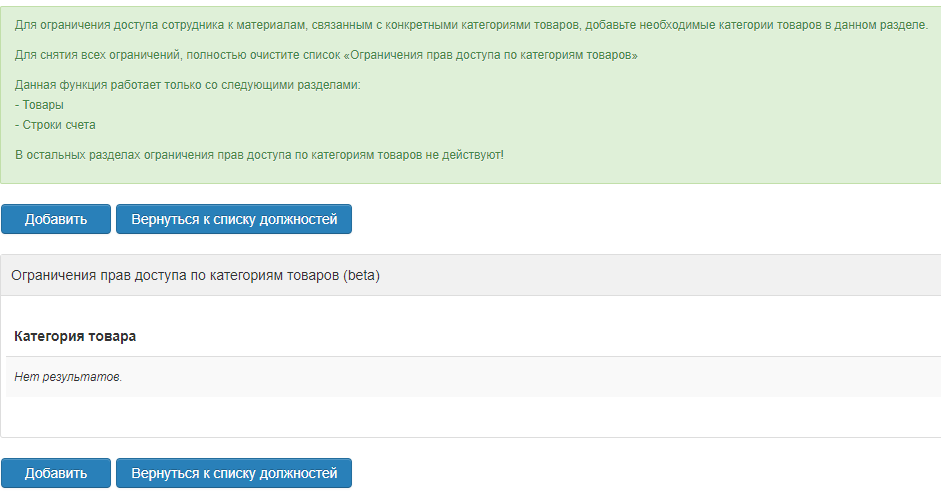 Для того, чтобы настроить права доступа для той или иной должности, необходимо: