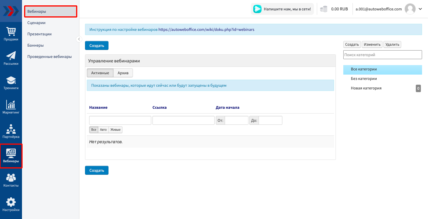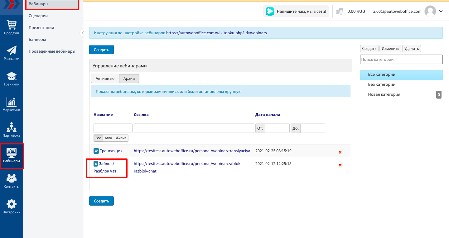 1. Создание вебинара