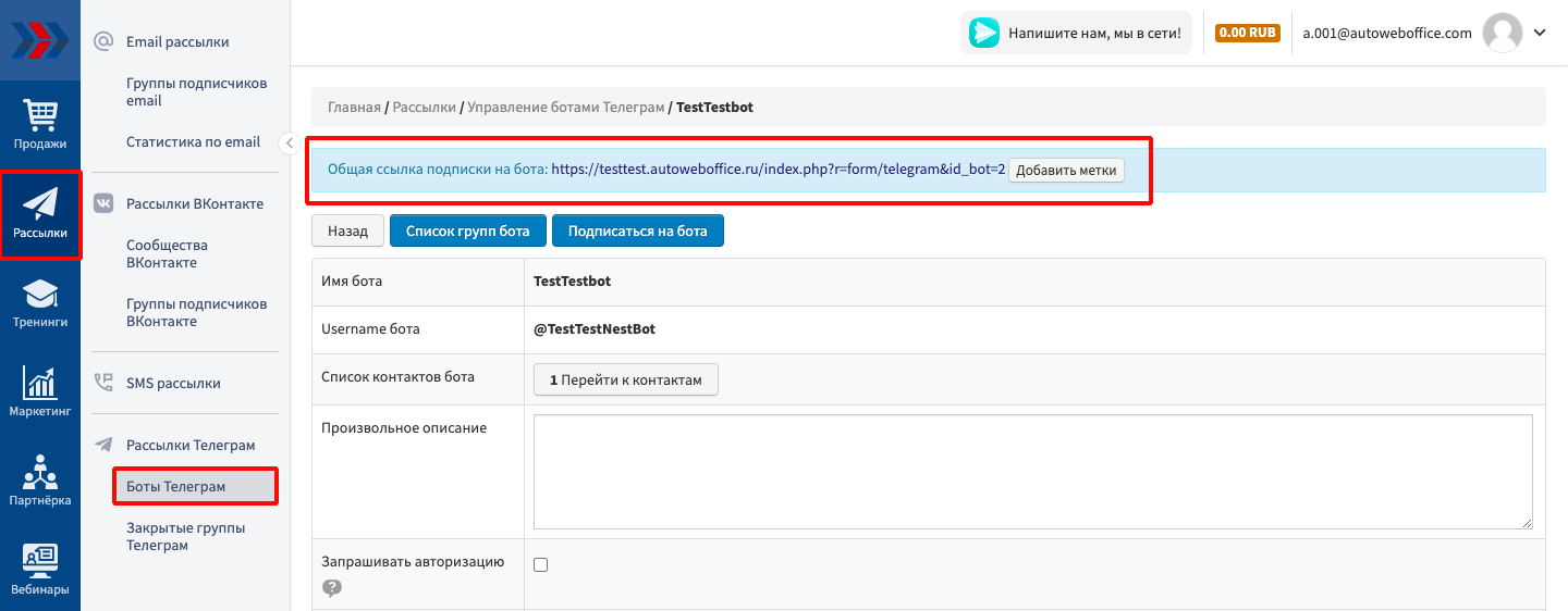 Вариант 2. Также в настройках бота есть общая ссылка подписки на бота.