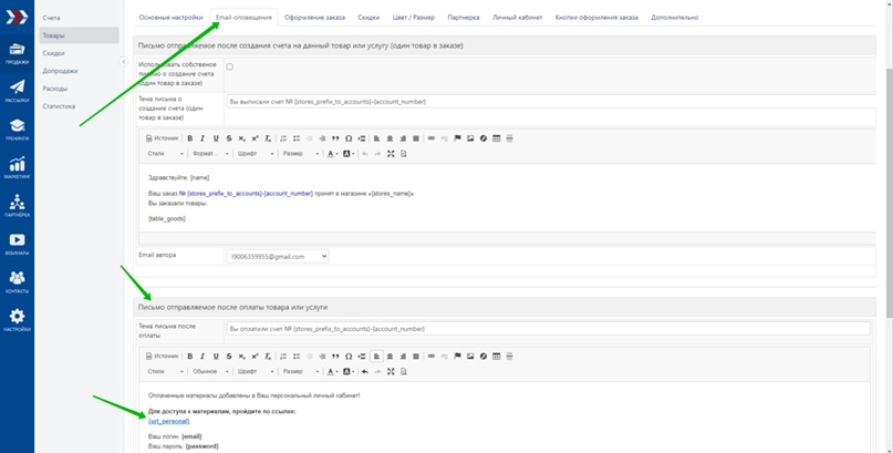 На странице редактирования товара во вкладке «Email-оповещения» в письме после оплаты по умолчанию присутствует персональная ссылка на вход в личный кабинет. Советуем не удалять ее, чтобы у пользователя была возможность отписаться от рекуррента прямо в своем личном кабинете.