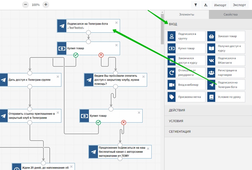 Входом в процесс является элемент подписки на Телеграм-бота.