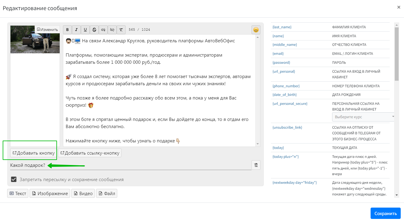 Инструменты страницы