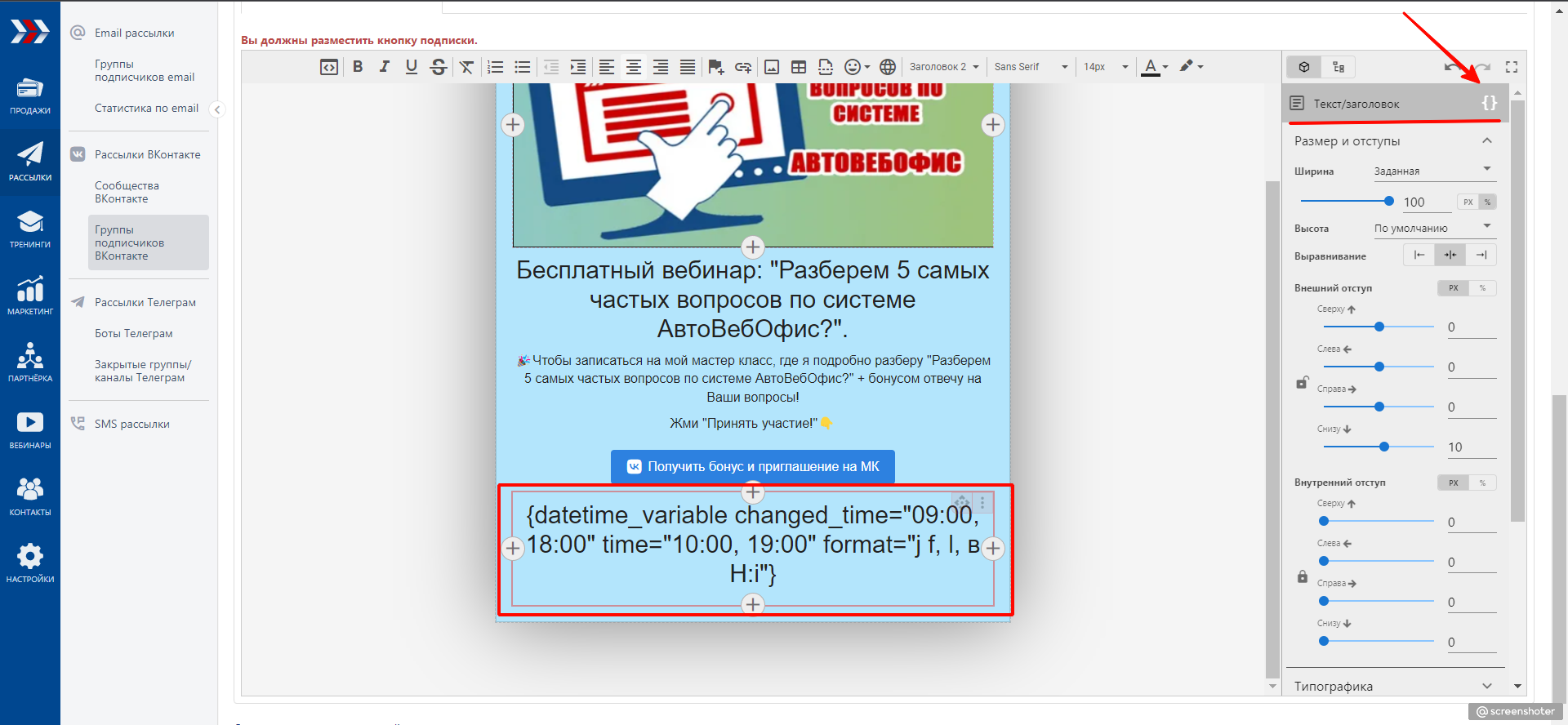 Инструменты страницы