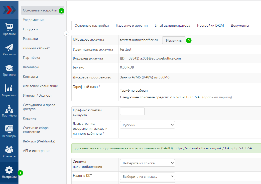 bazovaya_nastrojka_akkaunta_avtor_rassylok_podpisi_k_rassylkam_administrator_akkaunta_smena_url_logotipa_akkaunta