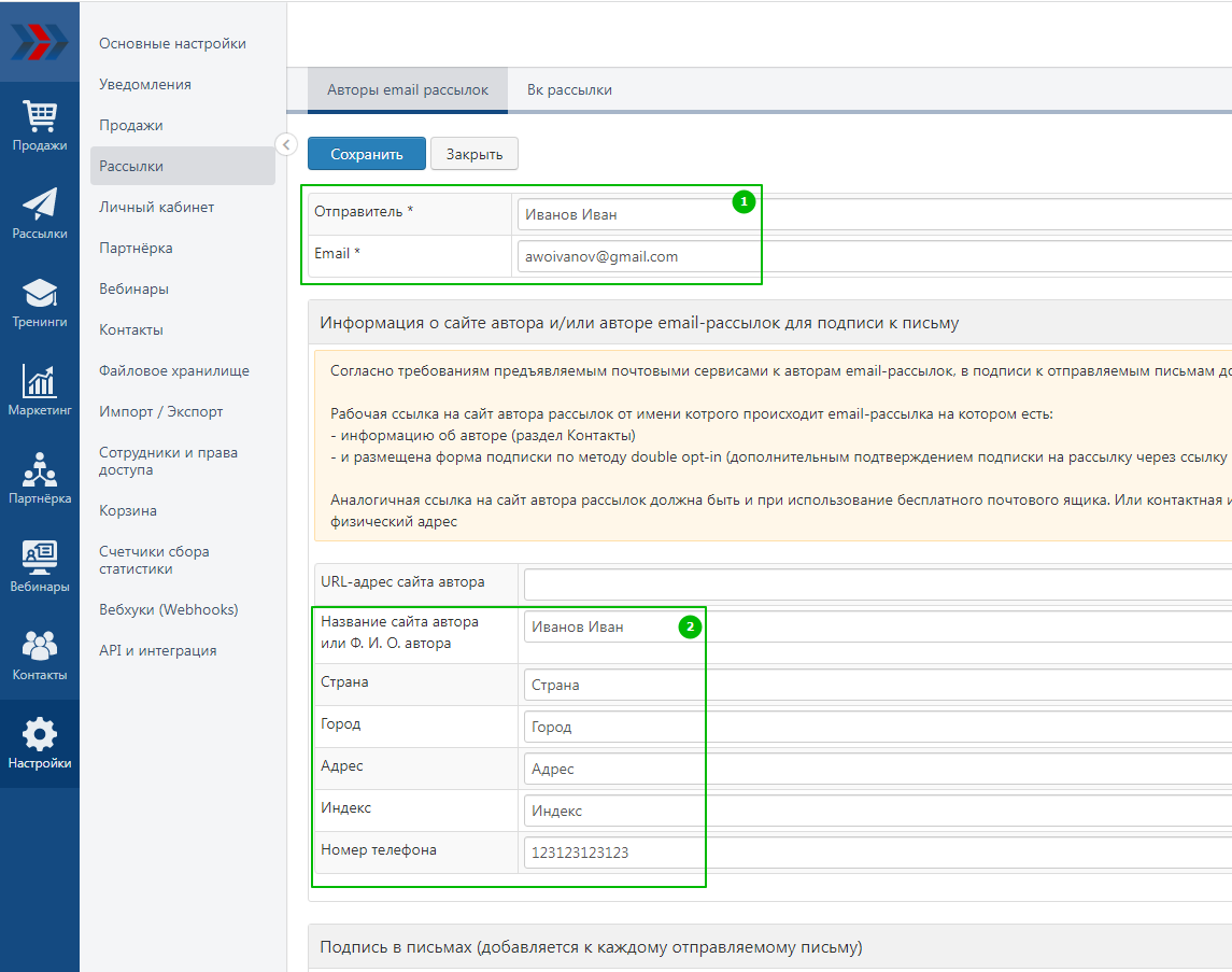 bazovaya_nastrojka_akkaunta_avtor_rassylok_podpisi_k_rassylkam_administrator_akkaunta_smena_url_logotipa_akkaunta